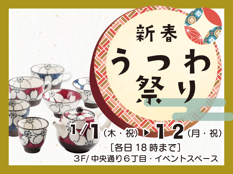 ■わさだタウン2街区3F/中央通り6丁目 イベントスペース■1月1日(木・祝) ▶︎ 1月12日(月・祝) ※各日18時まで長崎の波佐見焼きのうつわを中心に、様々なうつわを取り揃えております。2026年のことはじめ、お気に入りの新しいうつわでスタートしてみませんか?<商品の一例> 波佐見焼 《瑞幸窯》●咲桜 Uポット…5,170円●咲桜 飯椀…2,420円●咲桜 コップ…2,420円