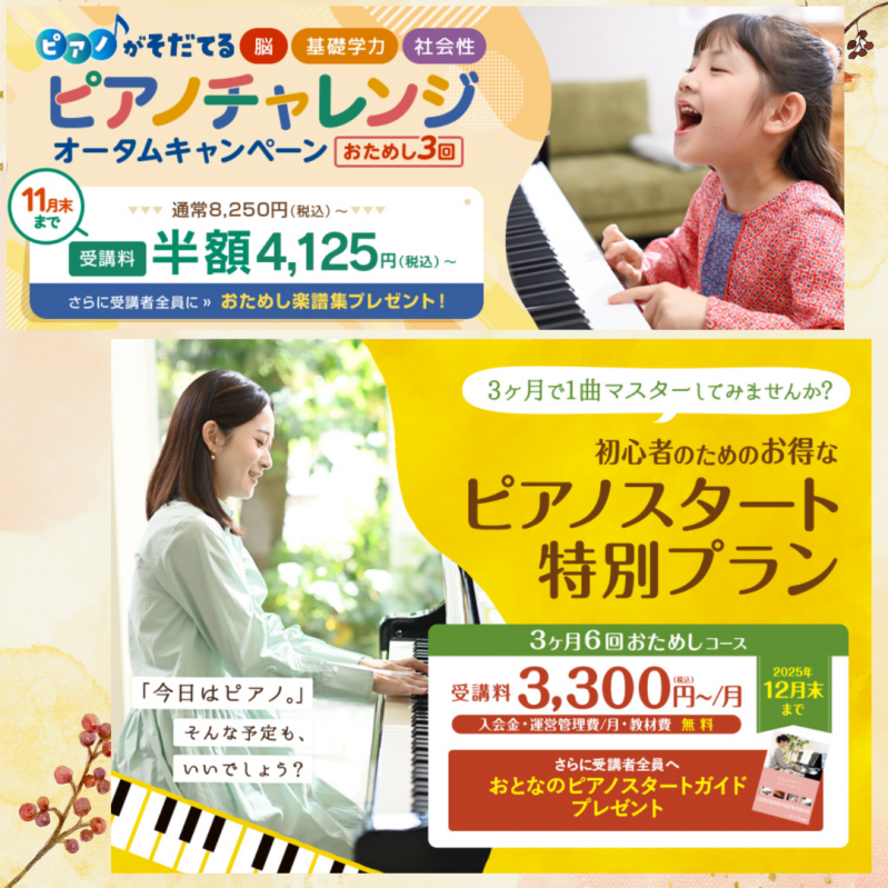 ☆おためし3回レッスン ピアノチャレンジ ≪2025年11月末まで≫