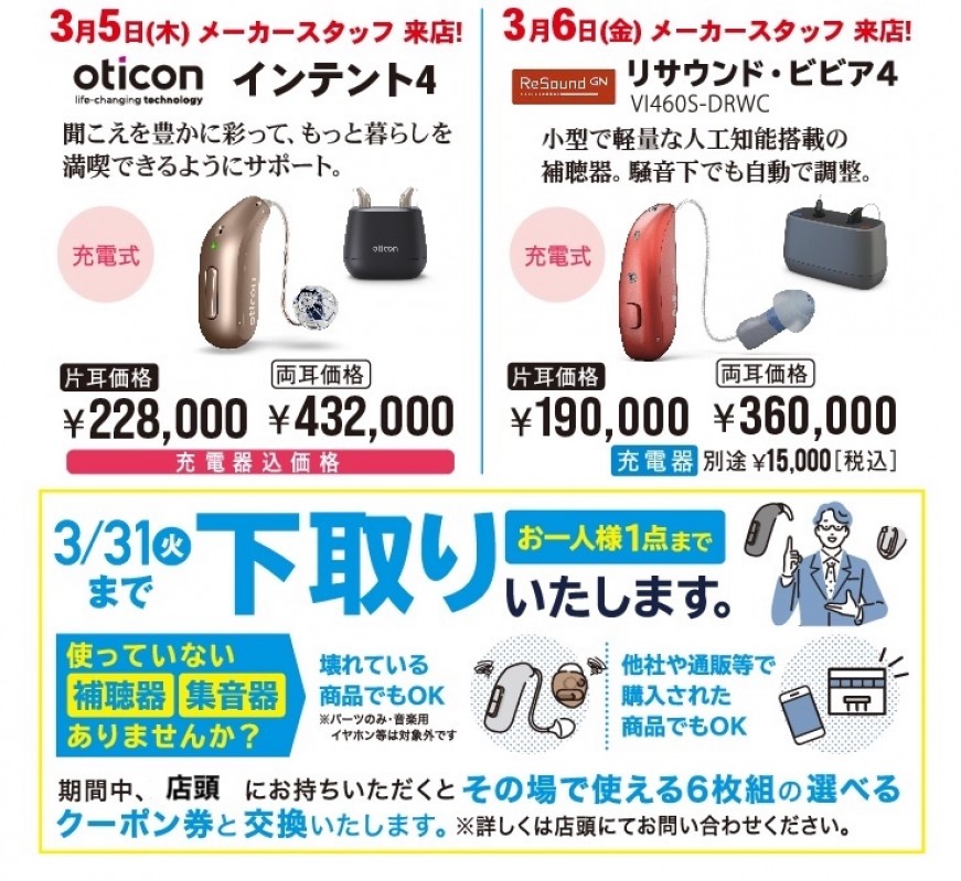 認定補聴器技能者による各メーカーの最新補聴器をとりそろえ、お客様に補聴器の体験をしていただけます。