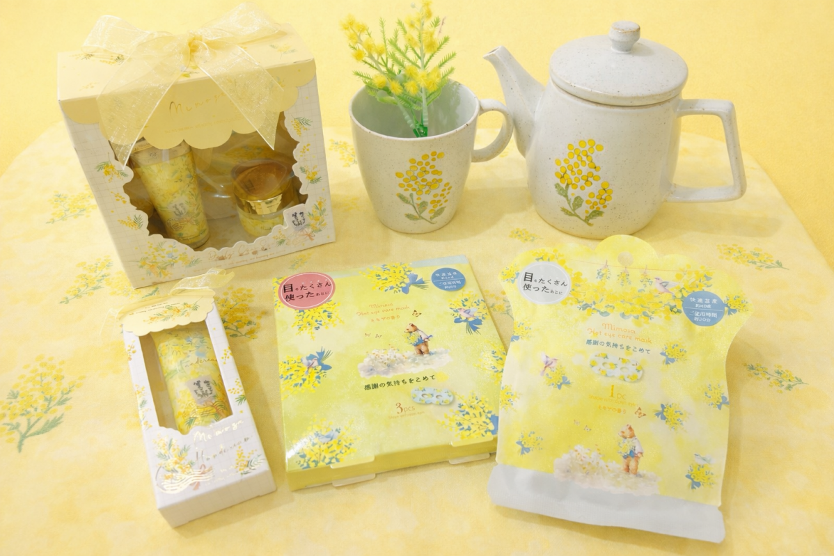 ふんわりと広がるミモザの香りが、春の訪れを感じさせてくれるシリーズです。心をほぐすホットアイマスクや、手肌をやさしく包むハンドクリームなど、季節の贈り物にぴったりのアイテムを揃えました。