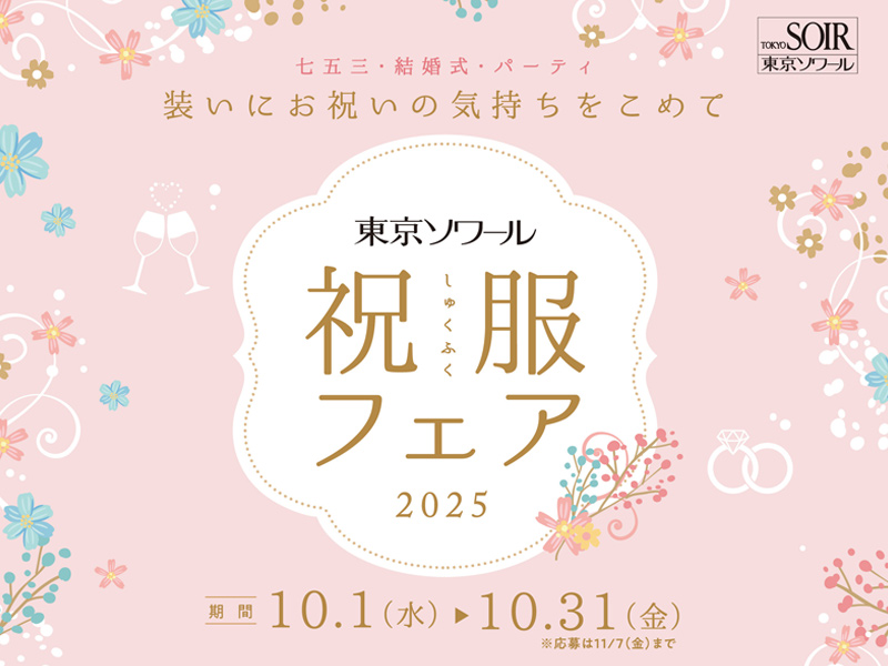 ■ 10/1(水) ~ 10/31(金)■ 3F フォーマルサロン※応募承りは11/7(金)まで※10/22(水)はトキハ本店は店休日です