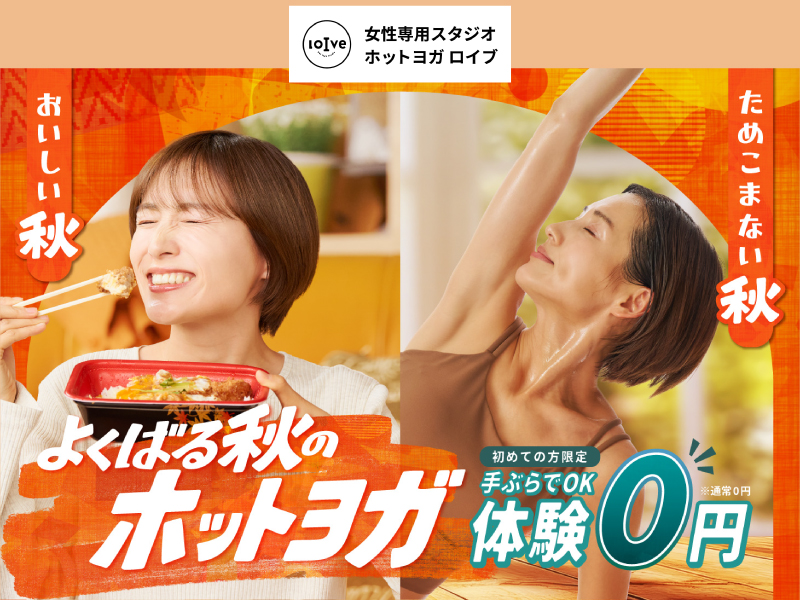 ■わさだタウン3街区フェスティバルタウン1F ホットスタジオヨガ ロイブ■店休日:月曜日滝汗体験でスッキリ!代謝アップにもアプローチ。秋は食欲が増す季節。つい食べすぎてためこんでしまう前に、ホットヨガでカラダを内側から整えませんか?初めての方には、運動が苦手でもOKの大人気メニュー「アロマリラックスヨガ」がおすすめ♪ 呼吸・瞑想・ストレッチでリラックスしながら代謝アップを目指します。のんびり気持ち良く汗をかき、心もカラダもすっきりする至福の時間をお試しください!≪清潔感のあるおしゃれな女性専用スタジオ・シャワー室完備≫リラックス系からハードなエクササイズレッスンまで幅広いプログラムをご準備。【ヨガマット・上下ウェア・バスタオル・フェイスタオル・お水】ぜ~んぶセットのコミコミ♪0円で体験いただけます。スタッフ一同ご来店お待ちしております!※体験には事前のweb予約が必要です