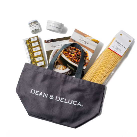 限定カラーのトートバッグに、朝食にもティータイムにもピッタリのスイーツやドリンクの詰合せ。
