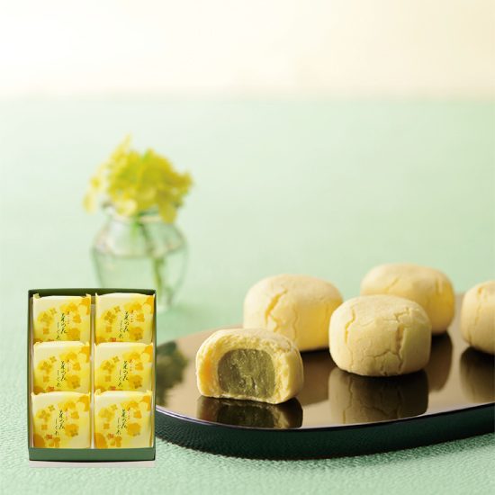 風味豊かなうぐいす餡をつつんだ黄身しぐれ。春陽浴びる菜の花に見立てました。
