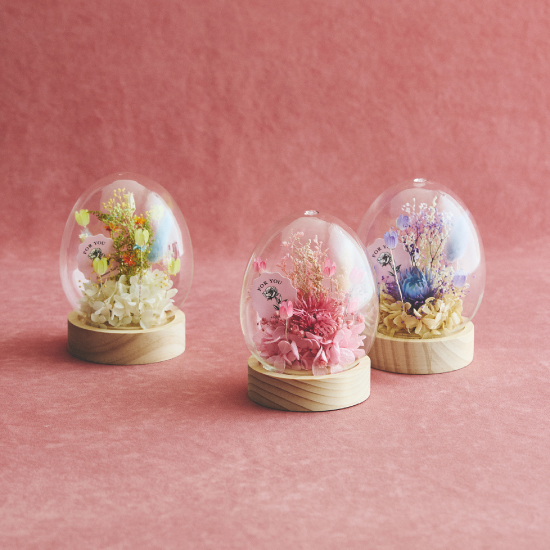 LEDライトで光るお花を中心にプリザーブドフラワーやドライフラワーを装飾したシリーズ。