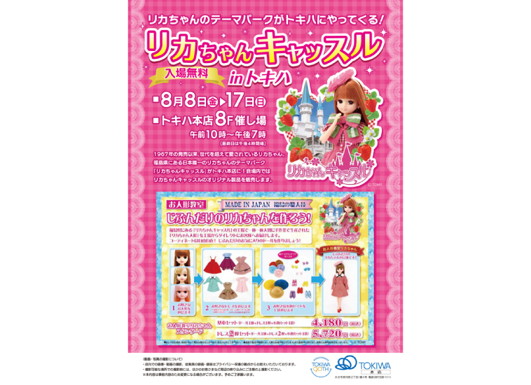1967年の発売以来、世代を超えて愛されているリカちゃん。福島県にあるリカちゃんのテーマパーク「リカちゃんキャッスル」期間限定ショップがトキハ本店に登場。会場ではじぶんだけのリカちゃんがつくれるお人形教室などのリカちゃんキャッスルオリジナル製品を販売しました。