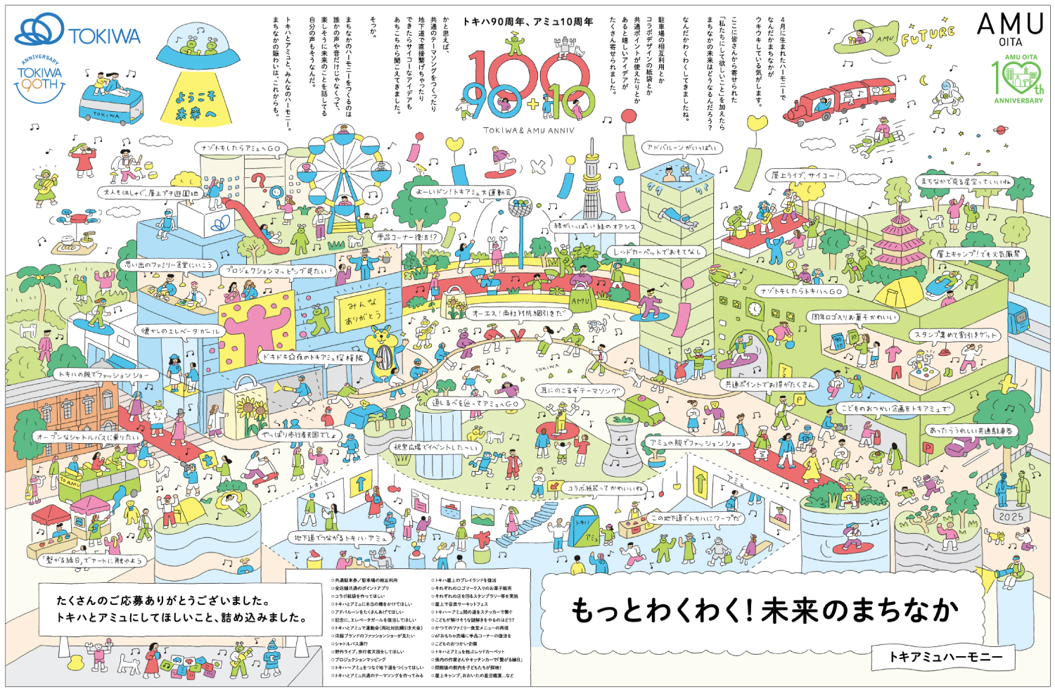 5月1日に公開したキービジュアルに「トキハとアミュにして欲しいこと」の募集に寄せられた「私たちにして欲しいこと」を加えた「未来はのまちなか」を公開。何かが始まる音はハーモニーとなり賑わうまちなかの様子ができました。