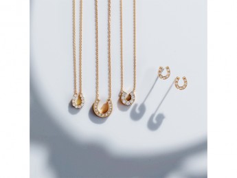 ■ 12月26日(金) ~ 2月4日(水)■ 1F ヴァンドーム青山『呼び込んだ幸せを逃さない』と言われている、ホースシュー(馬蹄)モチーフ。午の干支としても注目アイテム。メッセージの込められたラッキーモチーフは毎日のお守りとして、プレゼントにもお勧めです。<左から>・ネックレス(K18YG、ダイヤモンド) 165,000円・ネックレス(K18YG、ダイヤモンド) 132,000円・ネックレス(K18YG、ダイヤモンド) 115,500円・ピアス(K18YG、ダイヤモンド) 132,000円
