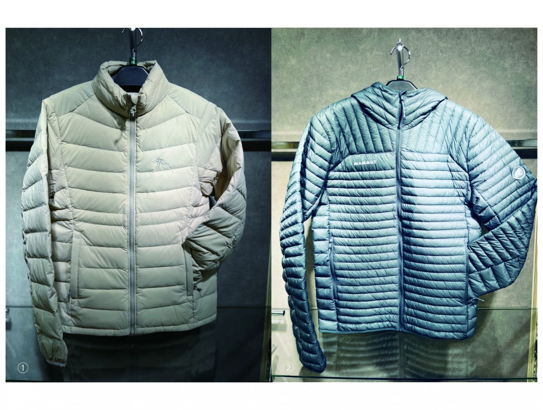 ②泊まりがけのハイキング・スキーツーリング・アルパインクライミングで重宝する軽量パッカブルジャケット。小さく畳める収納性、流線型のマイクロバッフル構造など、軽量化と機能性を最大限に追求したBroad Peakコレクションのアイテムです。