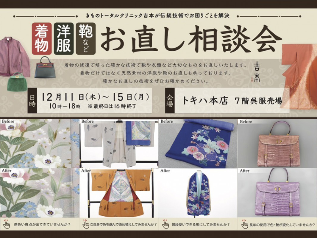 ■ 12月11日(木) ~ 12月17日(水)※最終日は16:00閉場■ 7F 呉服特設会場創業140年の歴史を誇る京都・室町の老舗和装小物メーカー「荒川」が日頃のご愛顧に感謝いたしまして、一堂に特別価格にてご提供いたします。ぜひ、この機会にご来場ください。