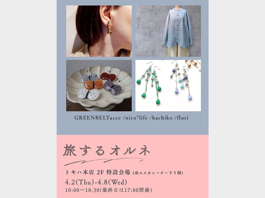 ■ 4月2日(木) ~ 8日(水)※最終日は17:00終了■ トキハ会館トゥインクルシティ1階 特設会場おしゃれを楽しむ大人の女性に向けて、他にはない個性的でオリジナリティ溢れるアイテムをご提案いたします。ミエーレグランデの世界観広がるお洋服に加え、キュートな雑貨も多数取り揃えております。