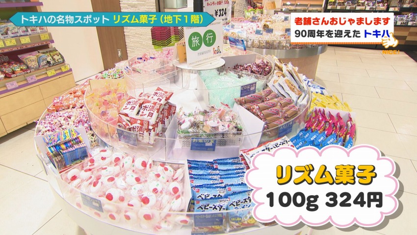 また、トキハで長年愛される名物スポットも。地下1階のグルグル回るリズム菓子は何世代にもわたって親しまれています。【リズム菓子 100g324円】