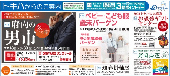 <特集:トキめきグルメ(トキハ本店)>地下2階 ふるさとトヨチーニペースト(プレーン) 90g 1,188円トヨチーニペースト(ペースト) 90g 1,188円<特集:父の日ギフト(トキハ本店)>地下1階藤居醸造 IDA(クラフトビール) 各 660円地下1階牟禮鶴(むれづる)酒造 夏 牟禮鶴 1,430円 ※なくなり次第終了地下1階大分丸福 寿司盛合せ 5,400円地下1階魚屋丸九 刺身盛合せ 3,240円4階紳士モゥブレィ シューケアセット ムーン 4,950円4階紳士ウラワザ 晴雨兼用折りたたみ日傘 各 8,250円4階紳士ラコステ カジュアルベルト 7,700円4階紳士ジェイプレス フラグメントケース 12,100円4階紳士ランバンコレクション キーケース 7,700円4階紳士パーカー ソケット オリジナル ラックブラックCT マルチファンクションペン 1本 6,600円