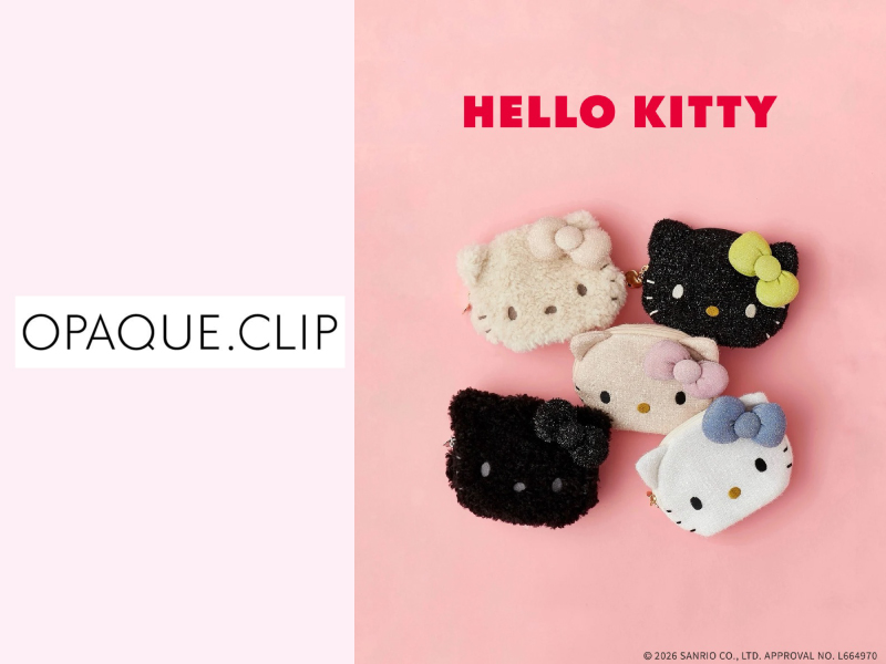 ■わさだタウン2街区2F/中央通り6丁目 オペークドットクリップ■販売 1月29日(木)より“HELLO KITTY”と“OPAQUE.CLIP”の2026年最初のスペシャルコラボレーション!ミラーチャームや巾着ポーチなどの新アイテムが、ふわもこ&キラキラ素材で登場。レオパード柄やシックなカラーで大人っぽく仕上げたハローキティのお顔モチーフのアイテムも。使いやすさも兼ね備えた、デイリーにもギフトにもおすすめのラインナップです♪