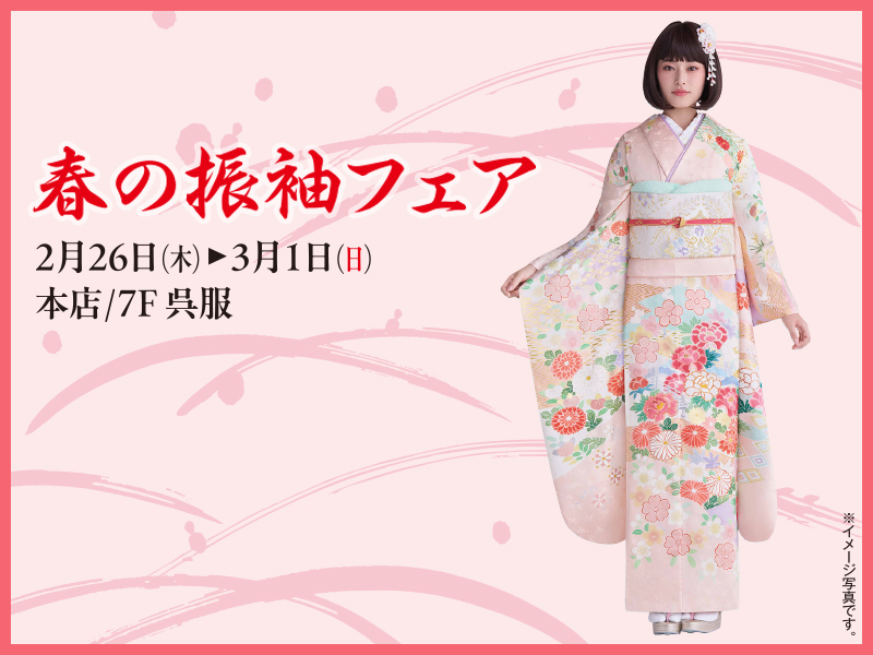 ■ 2月19日(木) ~ 24日(火)※最終日16:00終了■ 7F 呉服 特設会場フォーマルからしゃれものまでリユースきもの・帯を幅広く取り揃え特別価格で大提供!同時に、和装小物バーゲンも開催しております、この機会にどうぞお立ち寄りください。