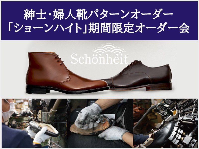 ■ 4月17日(金)~19日(日)※最終日は18:00終了■ 4F 紳士靴お好きなデザイン・素材・ソールなどをお選びいただき、あなただけの一足を作りあげるパターンオーダー。特別な日の一足からデイリーに使えるビジカジデザインまで、あなただけの一足を作ってみませんか?期間中、靴作りアドバイザーが来場し、細かいオーダーに対応します。革ならではの通気性やフィット感の良さを、ぜひショーンハイトで実感ください。<オーダー参考価格>◇ 革製 紳士靴・婦人靴 税込 33,000円から※お一人様30分~1時間程度頂戴します。※仕様変更により別途料金をいただく場合がございます。※ご注文からお渡しまで約70日頂戴いたします。(デザイン等により期間が長くなる場合もございます。)※ご予約のお客様が優先となります各種ご了承願います。【事前ご予約受付中】4月1日(水) ~17日(金)までTEL:097-538-1111(トキハ本店代表)トキハ本店LINE公式アカウントからもお申込みいただけます>(外部サイトへ遷移します)