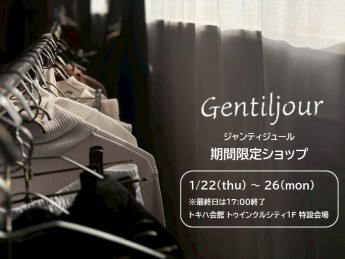 ■ 1月22日(木) ~ 26日(月)※最終日は17:00終了■ トキハ会館 トゥインクルシティ1F 特設会場大分市の人気セレクトショップ『 Gentiljour ジャンティジュール 』が期間限定ショップを開催!ジャンティジュールは、フランスの造語で “ 優しい日々 ” 。日常の中で “ ほんの少しだけ…心地のいい時間… ” “ 心地のいい空間があれば… ” 明日につながる…” という、シンプルで長く着られることをコンセプトに上質で、心地よいアイテムや雑貨を取り揃えました。この機会にどうぞお立ち寄りください。