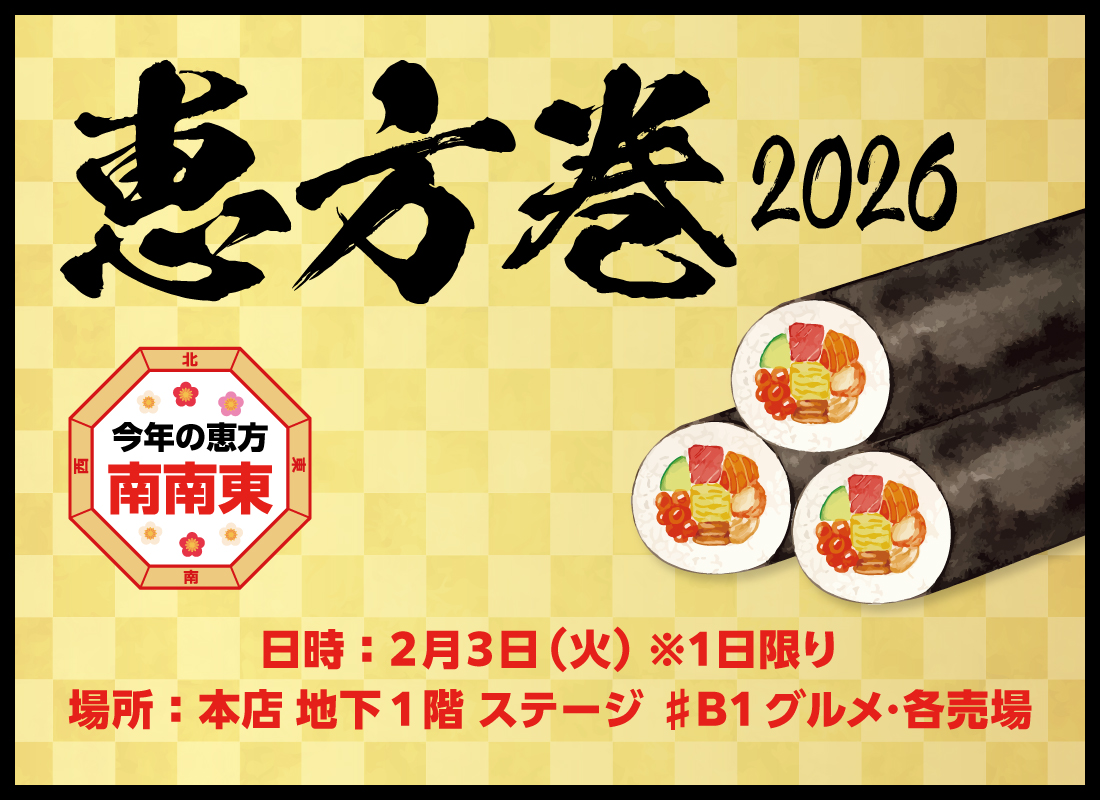 ・府内の男市 冬の陣 あす18日(木)~30日(火)/本店 8F催し場/最終日は16時閉場・ベビー・こども服 歳末バーゲン あす18日(木)~25日(木)/本店 8F催し場/最終日は16時閉場・迎春掛軸展 あす18日(木)~24日(水)/本店 7F画廊/最終日は16時30分終了・お歳暮ギフトセンター 本店8F中央・南催し場、別府店B1F、わさだ店1F