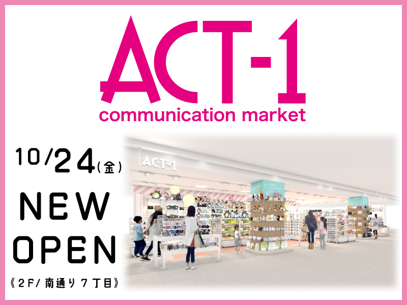 ■わさだタウン2街区2F/南通り7丁目・アクトワン10月24日(金)「ACT-1」がオープン!「ACT-1」は、人気のキャラクター雑貨やキッズコスメ、ステーショナリー、バッグやプチプライスアクセサリーなどのファッション小物にお菓子まで、ティーンズのいま一番“かわいい”を取りそろえたセレクトショップです。<オープン記念 特別企画>■10月24日(金) ▶︎ 11月3日(月・祝)☆バッグ いま付いている価格より10%OFF!☆アクセサリー いま付いている価格より20%OFF! ※一部対象外がございます。ノベルティもご用意しておりますので、この機会にどうぞお立ち寄りください。