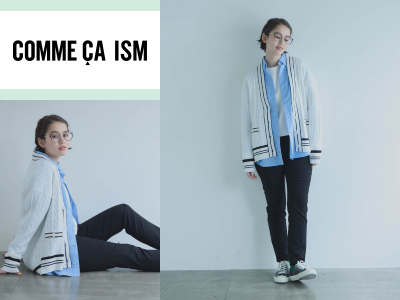 ■わさだタウン2街区2F/中央通り5丁目 コムサイズムおすすめ商品のご紹介です。 トラッドなスタイルに欠かせないチルデンカーディガン。ヒップが隠れるオーバーサイズなカーディガンです。バックスタイルに丸みが出るコクーンシルエットが、羽織った時に女性らしい柔らかい印象に仕上がります。配色のラインがポイントです。是非、お手に取ってご覧ください。●カーディガン…7,900円●シャツ…6,900円●パンツ…4,900円