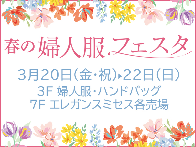 ■ 3月19日(木)~24日(火)■ 3F 南エスカレータ横特設会場新しい春を彩るセレモニースタイルをそろえました。今日も明日も着れる新しいカタチのスタイルで。