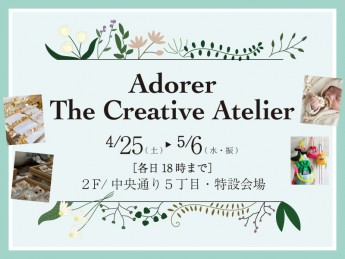 ■わさだタウン2街区2F/中央通り5丁目 特設会場■4月25日(土) ▶︎ 5月6日(水・振) 各日10:00~18:00期間限定で「〈Adorer〉The Creative Atelier(ザ・クリエイティブ・アトリエ)」を、2階 特設会場にて開催!総勢11組のクリエイターさんが大集合!!日替わりでワークショップも開催いたします。お気に入りを探してみませんか?☆参加クリエイター☆<アクセサリー>●te+te ●COQUETTE ●Hirari ●Noah. ●Amour ●Lupine<洋服>●BLOOM<雑貨>●cocon<キッズ小物>●mini me<布小物>●aoiro.made ●nana’sワークショップのスケジュールはコチラのPDFより↓↓