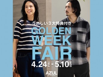 ■わさだタウン2街区1F/中央通り8丁目 アズールバイマウジー■4月24日(金) ▶︎ 5月10日(日)GW期間限定。今だけのお得な特典をご用意。特典①|お買い物が更にお得になるスペシャルフェア特典②|ポイント還元+5%特典③|人気アイテムが期間限定特別価格〈GOLDEN PRICE〉気になっていたアイテムをお得に手に入れるチャンスです。さらに、期間中に配信されるInstagram LIVEでは、“ここでしか聞けないお得情報”も公開予定…!詳細は「AZUL BY MOUSSY」公式Instagramをチェック!皆様のご来店を心よりお待ちしております。