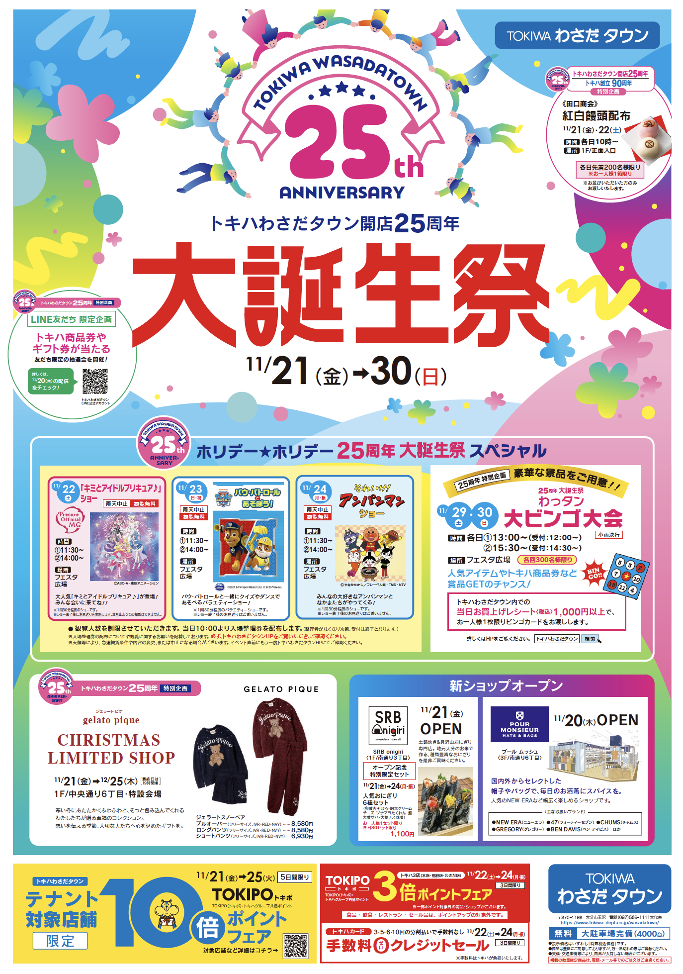 \TOKIPO(トキポ)3倍ポイントフェア/■ 11/22(土) ~ 11/24(月・振)■トキハ本店・別府店・わさだ店期間中、TOKIPO(トキポ)カードを提示してお買物いただくと、通常の3倍ポイントが付いてきます!おトクな期間となっておりますので、ぜひご利用ください!※食品・飲食・レストラン・セール品はポイントアップの対象外です。※TOKIPO(トキポ)カード:トキハカード、双葉会会員証カード、現金ポイントカード「RUCCHA!(ルッチャ)」\こちらも同時開催/