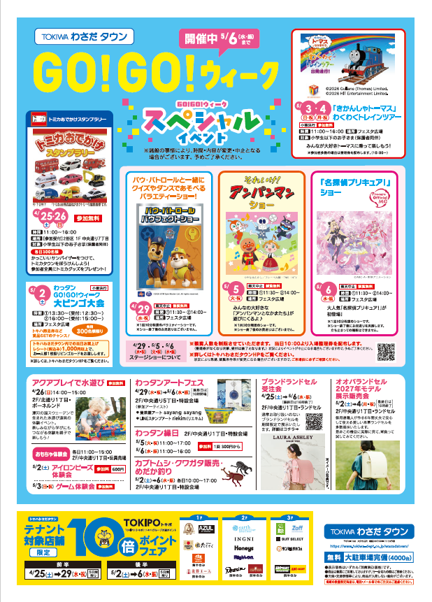 ■わさだタウン2街区2F/中央通り1丁目 ランドセル■4月25日(土) ▶︎ 5月6日(水・振) ※最終日は16時終了通常お取り扱いのないブランドランドセルを、期間限定で展示いたします。