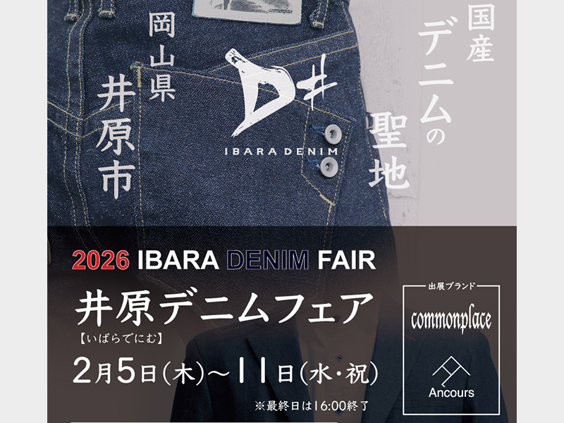 ■ 2月5日(木) ~ 11日(水・祝)※最終日は16:00終了■ 4F 南エスカレーター前 特設会場岡山発のジーンズブランド「井原デニム」POP UPを開催いたします。手織りの藍染織物の産地として有名な岡山県井原市にて職人の手によって作り上げたジーンズが勢揃い。デニム本来の素材感を活かし、現代風にアレンジされたデザインとスタイリングが楽しめるイベントとなっております。どうぞこの機会にお立ち寄りください。<商品一例>・テーパードジーンズ (30~36cm) 24,200円・レディステーパードジーンズ (24~29cm) 18,700円