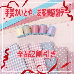 4月16日(木)~4月21日(火)の6日間 会員様セールを開催いたします。手芸のいとや会員証のご提示で、全品2割引と大変お得となっております。※一部除外品がございます※当日のご入会も対象です~日替わり 3割引商品はこちら~4/16(木)・17日(金) 接着芯・ドミット芯・ロープコード無地4/18(土)・19日(日) ポリエステル綿・ペレット・アリゼ コットンゴールドバティック(夏売)4/20(月)・4/21日(火) 持手・ショルダー・カラーハンプ■ミシンキャンペーンも同時開催中です。ぜひお越し下さいませ。電話 手芸のいとや 0977-26-6614