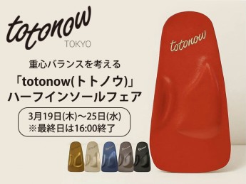 ■ 3月19日(木)~3月25日(水)※最終日は16:00終了■ 4F 南エスカレータ横 イベントスペースどんな靴にでも入る「 totonow (トトノウ) 」インソールフェアを開催いたします。足のアーチを効果的にサポートすることで、体のバランスを整える効果を期待できます。この機会にどうぞお立ち寄りください。