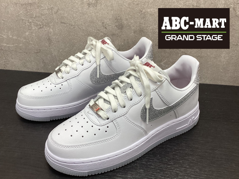 ■わさだタウン2街区3F/中央通り4丁目 ABCマートグランドステージコートでの快適な履き心地とオフコートスタイルを融合し、シルバーカラーのグリッターで飾ったスウッシュで定番のバスケットボールスタイルに新鮮なテイストをプラスしました。 もちろん、時代を象徴する80年代の構造と人気のNike Airクッショニングはそのまま継承し、伝説的なAF1の履き心地を実現しています。 スラムダンクを決めるシューズ。《NIKE》●W AIR FORCE 1 '07 LX(天然皮革 ・天然皮革+合成皮革)…18,150円