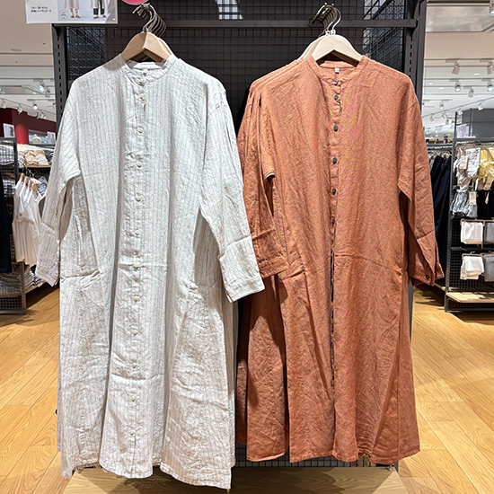 婦人 リネン 洗いざらし 長袖シャツ ワンピース