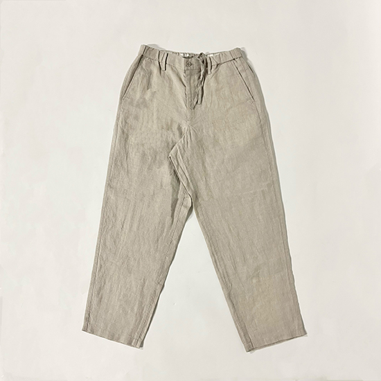 紳士 リネン 洗いざらし テーパードパンツ