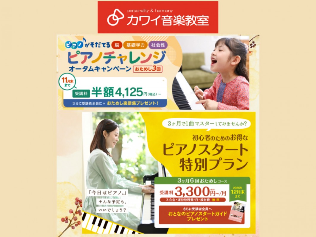 こんにちは♪カワイ音楽教室です。【秋の無料体験プラン・秋のおためしプラン】のご紹介です。