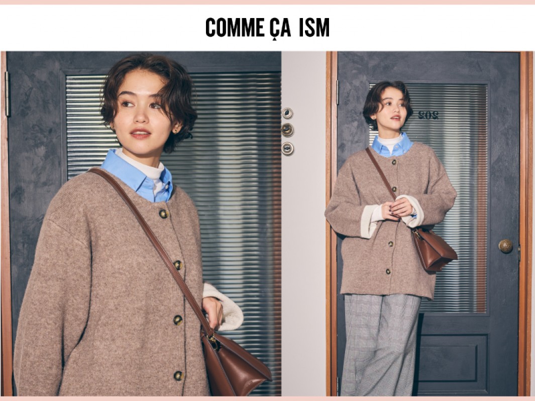 ふんわりとした暖かみのある素材に、裏面を軽いポリエステルの素材で2重で編んだダブルフェイスの編地。程良い厚みを持たせつつニット地なので着心地が良く、秋口から羽織れます。後ろ身頃の裾にタックを入れコクーンシルエットに仕上げています。