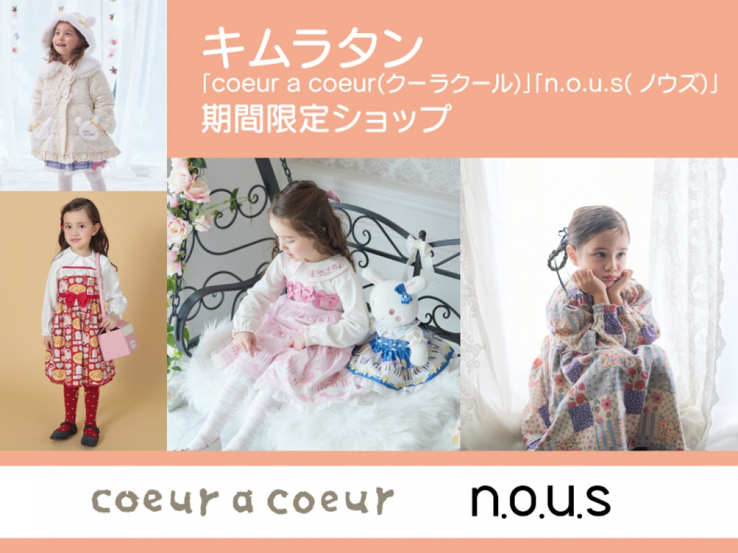 今年、創業100周年を迎える神戸の老舗子供服メーカー(株)キムラタンによる「うさぎさん」をモチーフに可愛いメルヘンな世界が広がるブランド「coeur a coeur(クーラクール)」と、遊び心のあるデザインのデイリーウェア「n.o.u.s(ノウズ)」が、期間限定でわさだタウンに登場します!