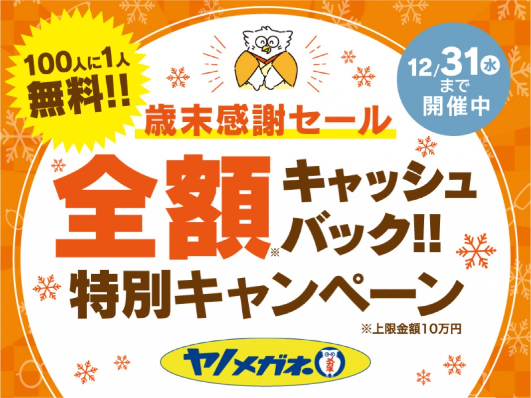 ヤノメガネで、12月中に税込1万円以上お買上げのお客様を対象に『全額キャッシュバック』の特別キャンペーンを開催!