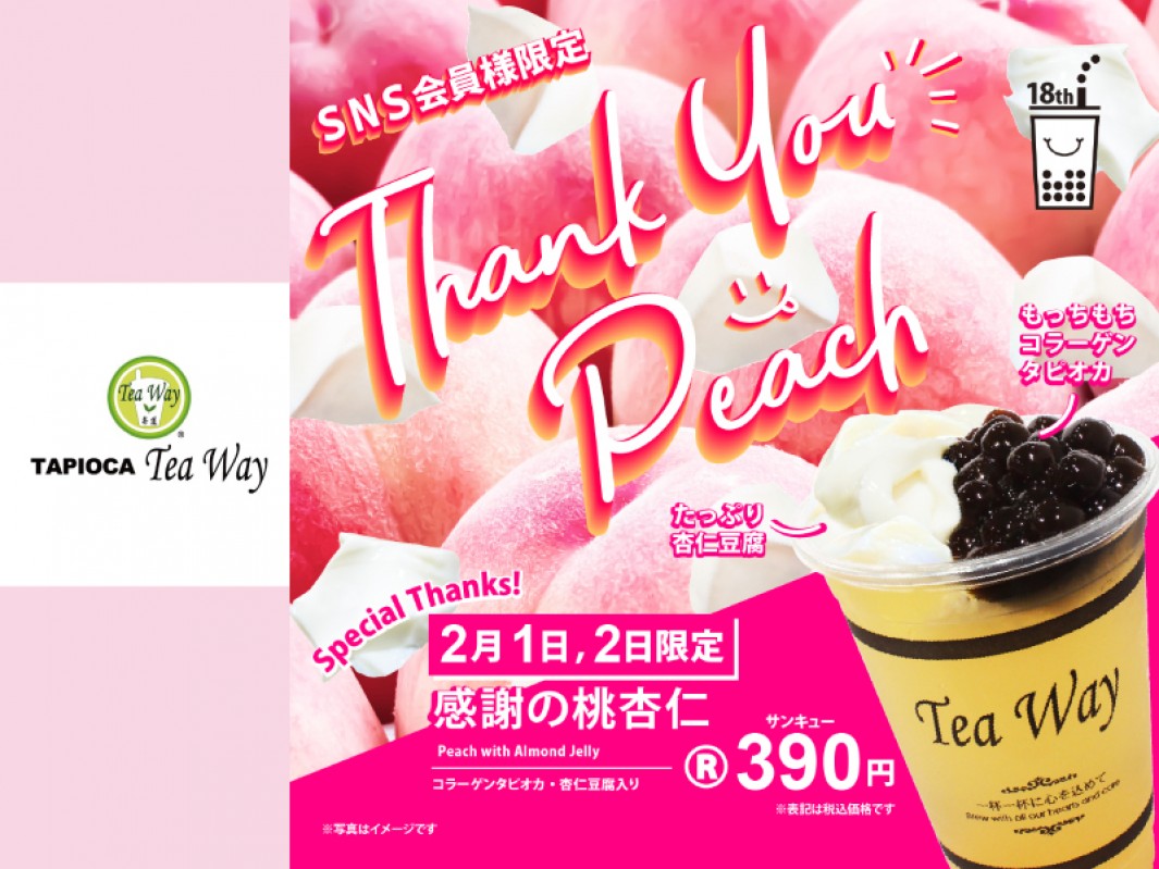いつもTeawayのタピオカドリンクをご愛顧いただき、ありがとうございます。当店は2月2日で18周年を迎えます。