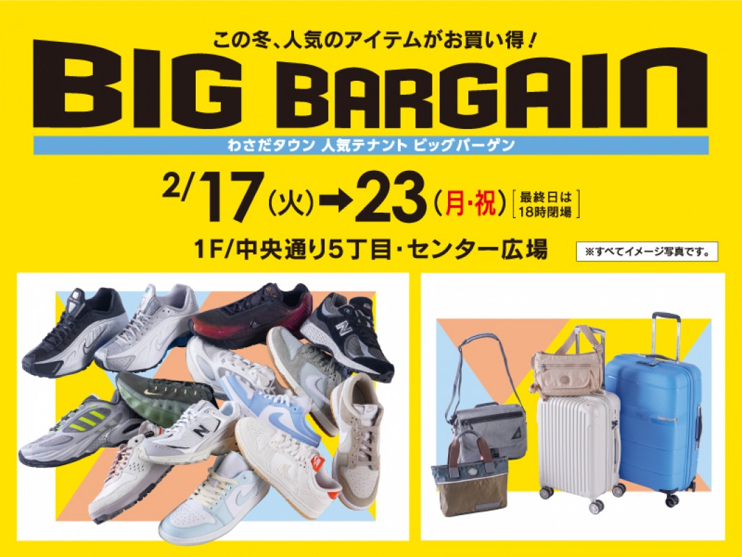 この冬、人気のアイテムがお買得!「わさだタウン人気テナント BIG BARGAIN」を開催。この機会に是非お越しください。
