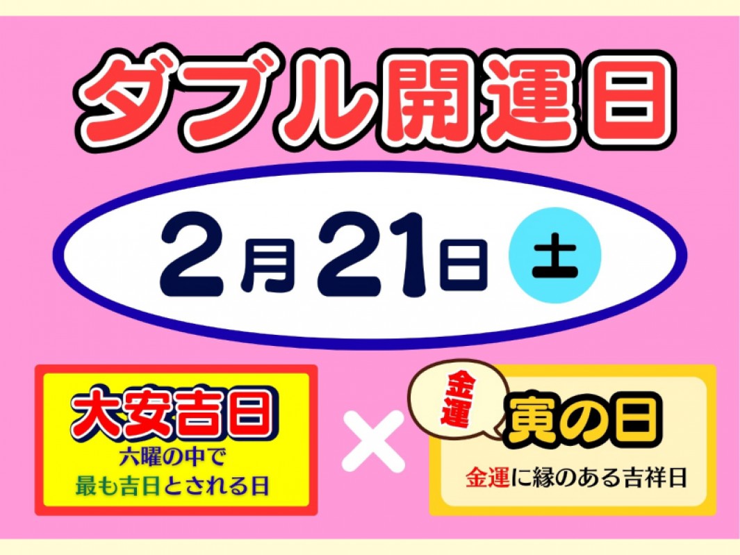 2月21日(土)は「大安吉日」と、金運の「寅の日」が重なるダブル開運日。ぜひ、宝くじ売場へGO!