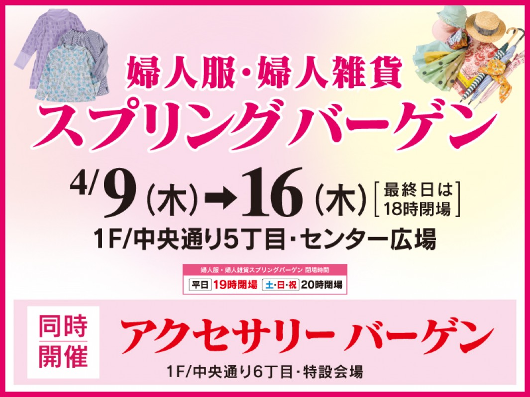 センター広場にて「婦人服・婦人雑貨 スプリングバーゲン」を開催!
