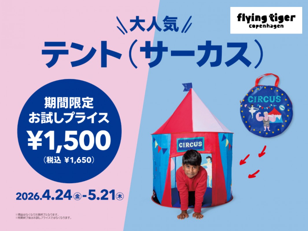 期間中(※1)は、シリーズ累計販売が41万個を突破した(※2)人気アイテム『キッズテント』(全10種を展開中)の中から、サーカスデザインの1種が対象となります。